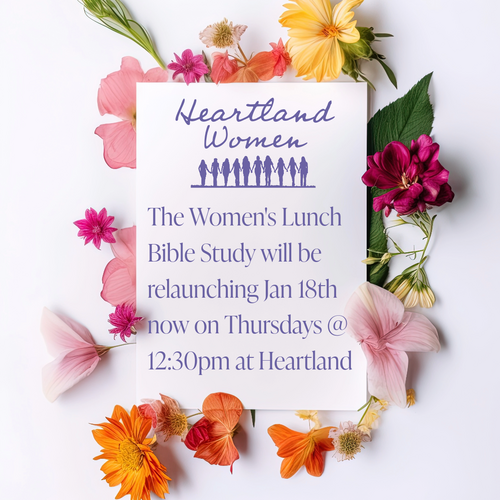Join the Lunch Time group of gals meeting for Bible study at Heartland Community Church. Starting January 18th, we meet every Thursday at 12:30pm to dig into Kay Arthurs' "Listening to God" in the Bible book of Mark. No book is necessary, just come and join in. Bring your own sack lunch if you want to!